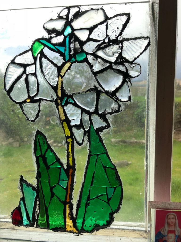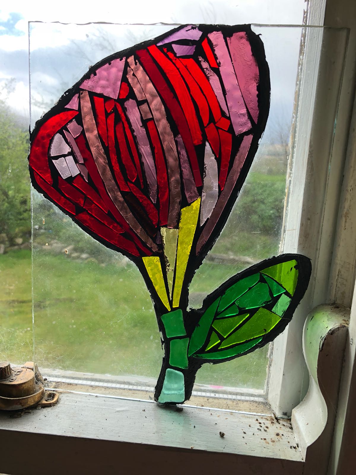 Based on a snowdrop (?!) this work took about 3 hours. Its much faster than leading and uses up broken glass.
